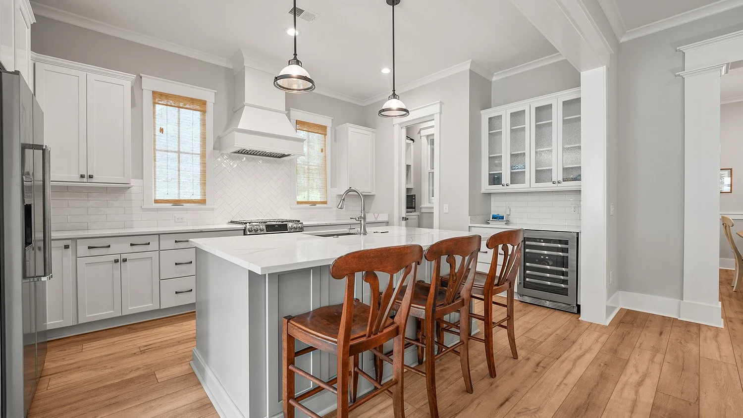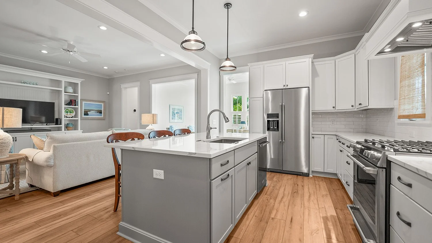 Gorgeous, three bedroom, one story home built in 2023 and located on prestigious St. Phillips Blvd, just steps away from Habersham's stunning marketplace. It has been lightly used as a getaway property and feels brand new. Situated on a generous homesite with the largest side setbacks between houses offered in Habersham, this custom built home features numerous upgraded finishes including specialty floors, elevated cabinetry and countertops and beautiful coastal trim. The garden offers privacy and exceptional landscaping. The front porches are wide and wrap around the right side of the home. There is extra storage above the garage and in the house itself in the form of a very large, foam insulated attic with standing room. The perfect home for entertaining family and friends.