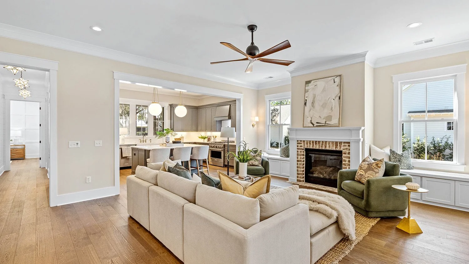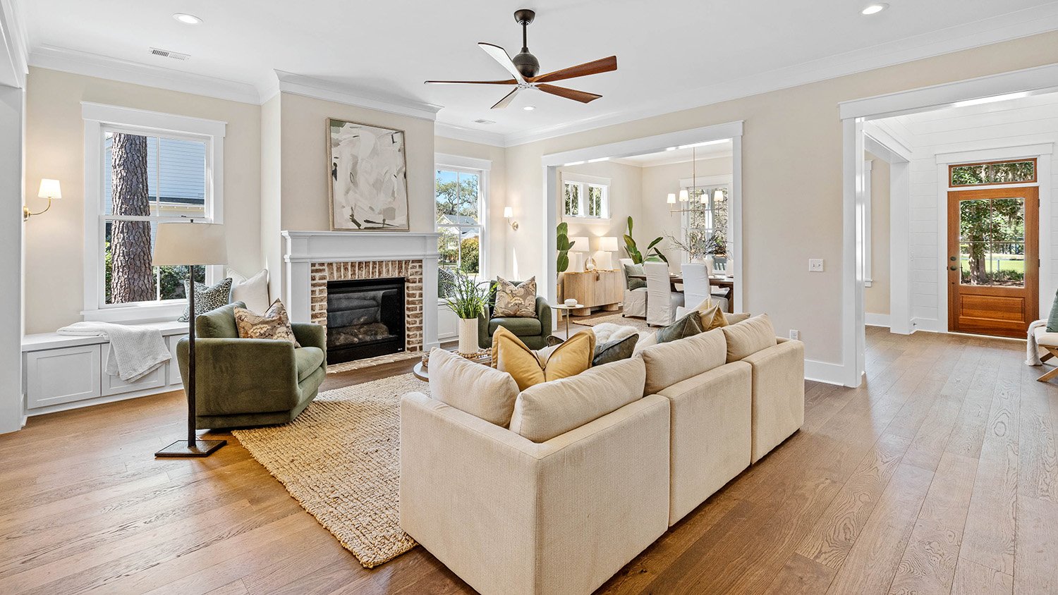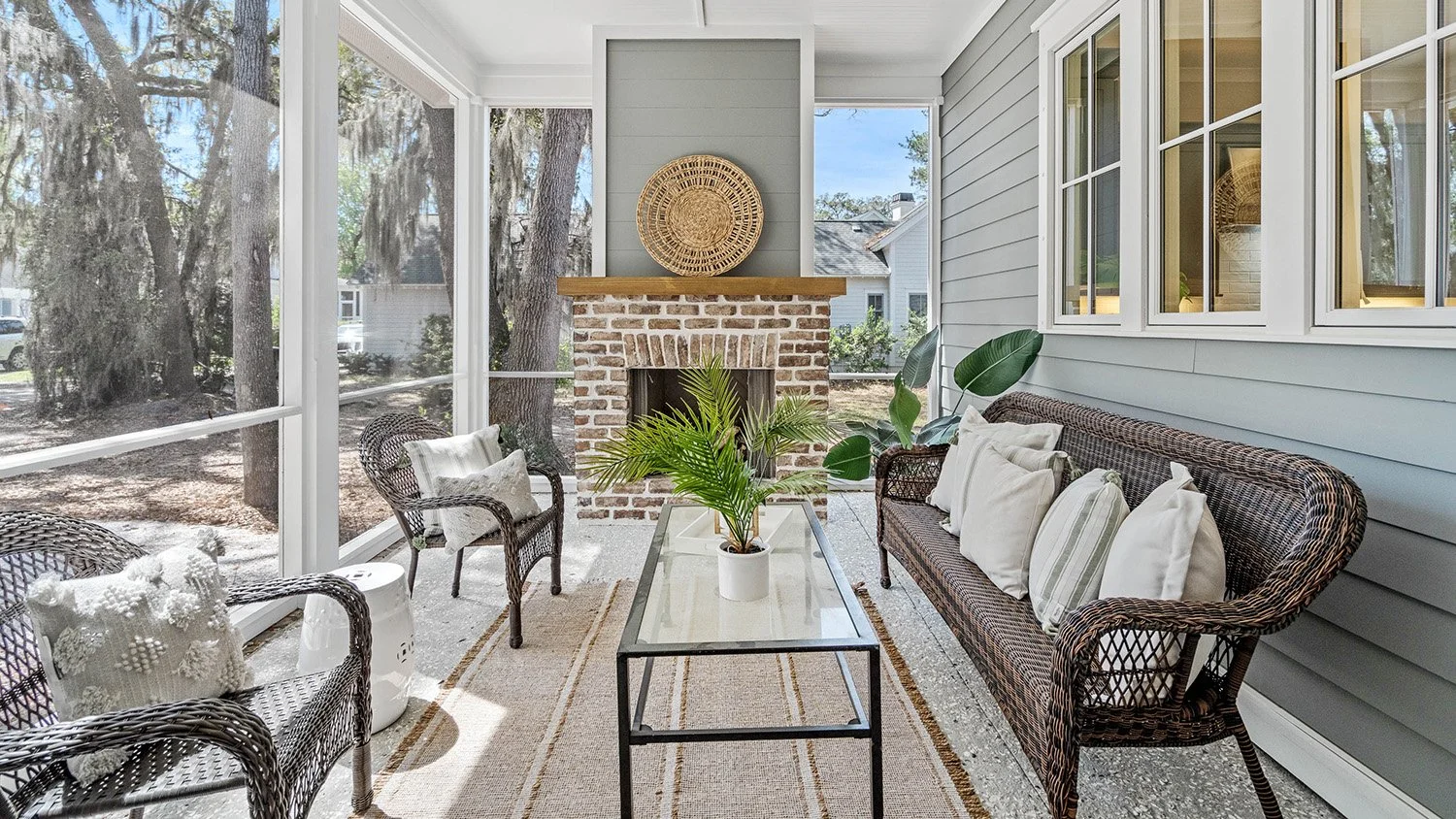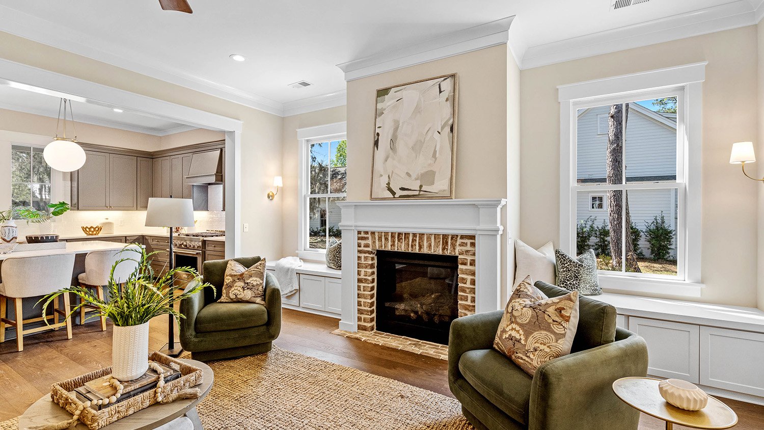 Gorgeous views of Habersham's namesake park define this stunning 3BR/3BA, 2,106 sq ft single-story home with attached two-car garage. Designed for seamless entertaining, the open floor plan flows effortlessly to a large screened porch with TV capabilities -perfect for football nights or outdoor movies year-round. Dual Savannah brick fireplaces adorn indoor and outdoor living spaces. The chef's kitchen features an oversized quartz island and roll-out windows for easy porch serving. A private guest wing that can be shut off from the main areas of the house affords the ultimate in privacy for visiting friends and family. A serene and spacious primary suite boasting exquisite trim detail in the bath completes this beautifully detailed, indoor-outdoor retreat. Must see