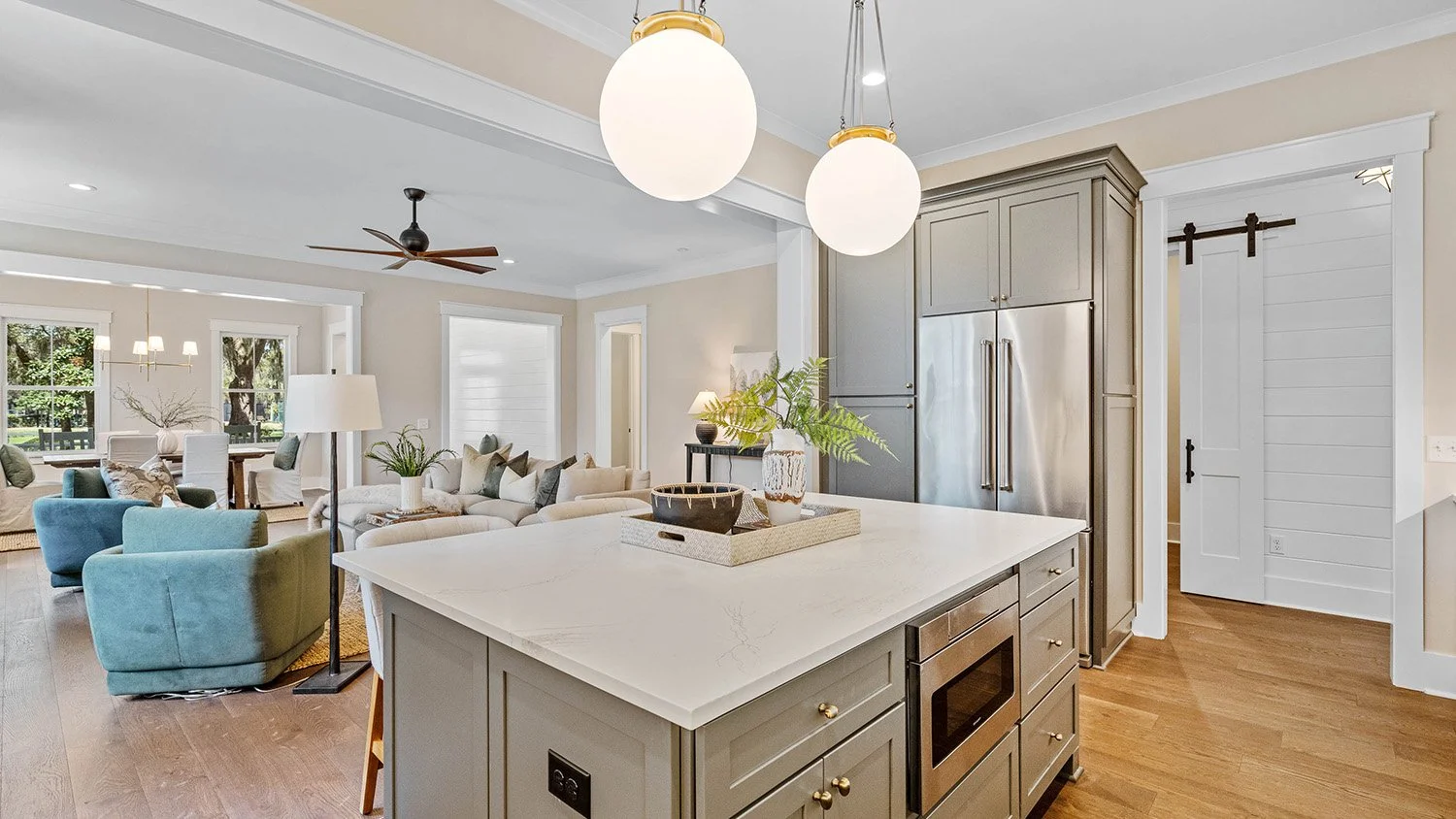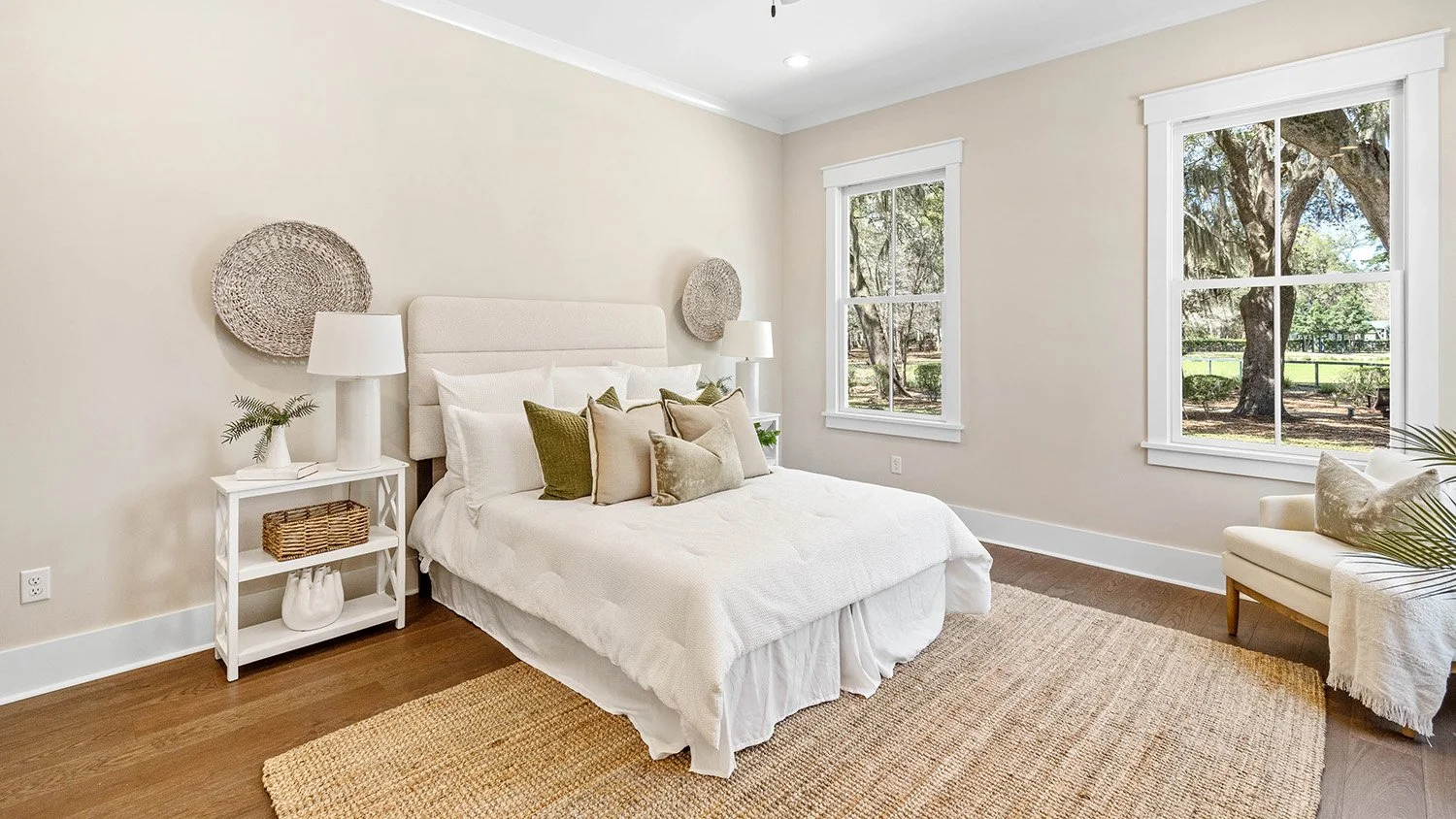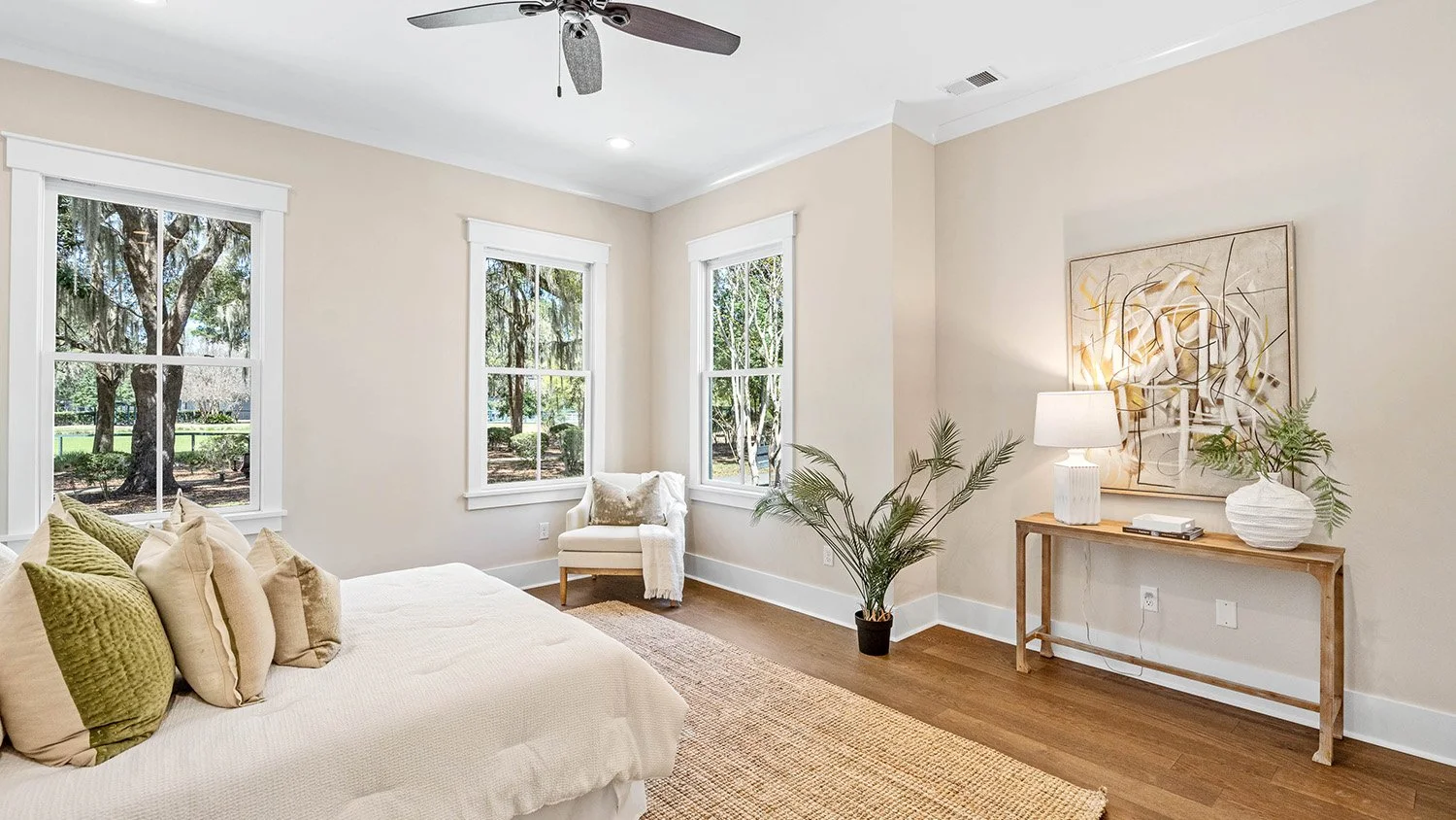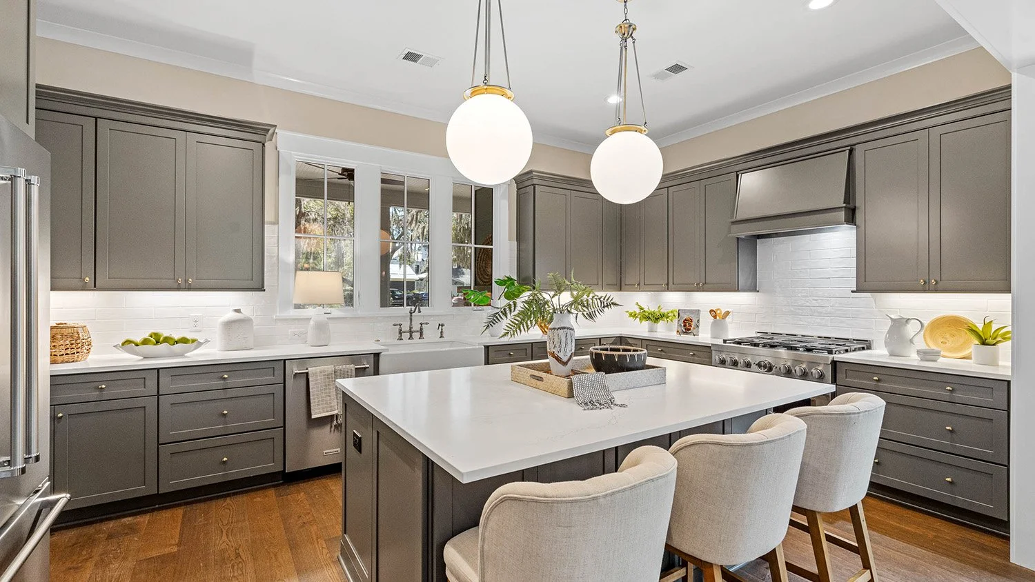 Gorgeous views of Habersham's namesake park define this stunning 3BR/3BA, 2,106 sq ft single-story home with attached two-car garage. Designed for seamless entertaining, the open floor plan flows effortlessly to a large screened porch with TV capabilities -perfect for football nights or outdoor movies year-round. Dual Savannah brick fireplaces adorn indoor and outdoor living spaces. The chef's kitchen features an oversized quartz island and roll-out windows for easy porch serving. A private guest wing that can be shut off from the main areas of the house affords the ultimate in privacy for visiting friends and family. A serene and spacious primary suite boasting exquisite trim detail in the bath completes this beautifully detailed, indoor-outdoor retreat. Must see